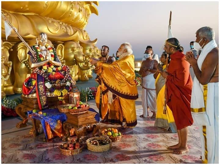 <p style="text-align: justify;"><strong>Trending Video In Hindi:</strong> प्रधानमंत्री नरेंद्र मोदी (PM Narendra Modi) की लोकप्रियता देश के ही साथ विदेश में भी देखी गई है. कई मौकों पर देश के साथ ही साथ विदेश में भी लोगों के बीच पीएम मोदी को लेकर दिखे क्रेज से साफ है कि ज्यादातर लोग प्रधानमंत्री से काफी इंप्रेस हुए हैं. ऐसा ही एक नजारा शनिवार को देखने को मिला. जिस दौरान एक छोटा बच्चा प्रधानमंत्री नरेंद्र मोदी का आशीर्वाद लेते दिखाई दिया.</p> <p style="text-align: justify;">दरअसल हैदराबाद के सीमावर्ती इलाका मुचिन्ताल में प्रधानमंत्री नरेंद्र मोदी (PM Narendra Modi) ने "स्टैच्यू ऑफ इक्वालिटी" को देश को समर्पित कर दिया है. "स्टैच्यू ऑफ इक्वालिटी" के उद्घाटन समारोह के दौरान एक बच्चे को प्रधानमंत्री <a title="नरेंद्र मोदी" href="https://www.abplive.com/topic/narendra-modi" data-type="interlinkingkeywords">नरेंद्र मोदी</a> (PM Narendra Modi) के सामने ‘दंडवत प्रणाम’ कर उनका आशीर्वाद लेते देखा गया. इस दौरान वहां खड़े सभी लोगों के साथ ही पीएम मोदी भी काफी हैरान नजर आए.</p> <blockquote class="twitter-tweet"> <p dir="ltr" lang="en"><a href="https://twitter.com/hashtag/WATCH?src=hash&ref_src=twsrc%5Etfw">#WATCH</a> | A child took the blessing of Prime Minister Narendra Modi while performing ‘dandvat pranam’ during the inauguration ceremony of ‘Statue of Equality’ commemorating the 11th-century Bhakti Saint Sri Ramanujacharya in Hyderabad <a href="https://t.co/yeqAmw5hyU">pic.twitter.com/yeqAmw5hyU</a></p> — ANI (@ANI) <a href="https://twitter.com/ANI/status/1489999657866444803?ref_src=twsrc%5Etfw">February 5, 2022</a></blockquote> <p style="text-align: justify;"> <script src="https://platform.twitter.com/widgets.js" async="" charset="utf-8"></script> </p> <p style="text-align: justify;">बता दें कि 11वीं सदी के भक्ति संत श्री रामानुजाचार्य की याद में 216 फीट ऊंची स्टैच्यू ऑफ इक्वालिटी बनाई गई है. संत श्री रामानुजाचार्य ने आस्था, जाति और पंथ सहित जीवन के सभी पहलुओं में समानता के विचार को बढ़ावा देने के लिए कई महत्वपूर्ण कार्य किए थे. स्टैच्यू ऑफ इक्वालिटी को बनाने के लिए पांच धातुओं का इस्तेमाल किया गया है. जिसमें सोना, चांदी, तांबा, पीतल और जस्ता को रखा गया है. </p> <p style="text-align: justify;">संत श्री रामानुजाचार्य की यह प्रतिमा दुनिया में बैठी अवस्था में सबसे ऊंची धातु की प्रतिमाओं में से एक है. इसे 54-फीट ऊंचे आधार भवन पर स्थापित किया गया है. जिसे ‘भद्र वेदी’ के नाम से पुकारा जाता है. इसमें एक शैक्षिक दीर्घा हैं, जो संत रामानुजाचार्य के कई कार्यों का विवरण प्रस्तुत करते हैं, इसके अलावा इसमें वैदिक डिजिटल पुस्तकालय और अनुसंधान केंद्र, प्राचीन भारतीय ग्रंथ, एक थिएटर भी है.</p> <p style="text-align: justify;"><strong>इसे भी पढ़ेंः</strong><br /><a href="https://www.abplive.com/trending/by-helping-dog-scared-of-sound-of-firecrackers-girl-gave-message-of-humanity-to-her-elders-2054625"><strong>Watch: बच्ची ने की पटाखों की आवाज से डरे डॉगी की मदद, अपने से बड़ों को दिया इंसानियत का मैसेज</strong></a></p> <p style="text-align: justify;"><a href="https://www.abplive.com/trending/man-gliding-on-the-paramotor-was-seen-touching-pyramid-with-his-feet-2054685"><strong>Watch: पैरामोटर पर ग्लाइड कर पिरामिड को पैर से छूता दिखा शख्स, दंग रह गए यूजर्स</strong></a><br /><br /></p>