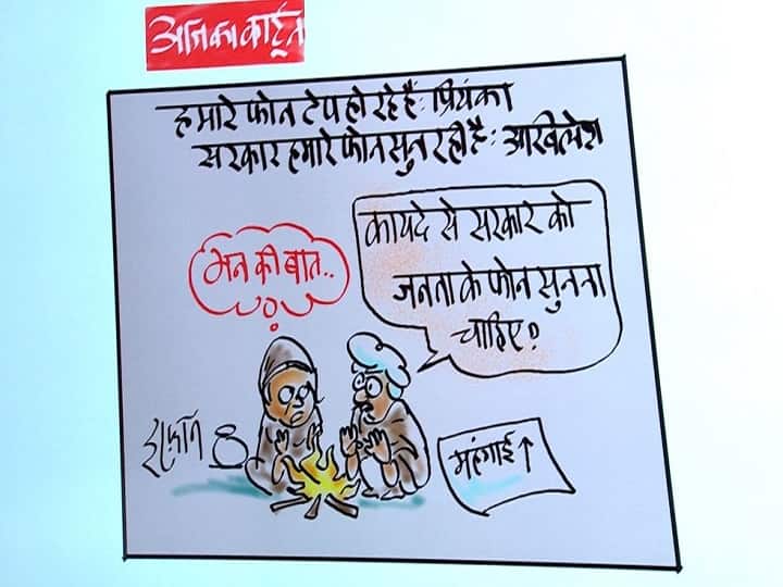 <p><strong>Irfan Ka Cartoon:</strong> समाजवादी पार्टी के अध्यक्ष अखिलेश यादव ने बीते दिनों फोन टैप होने का आरोप लगाया है. वहीं, कांग्रेस नेता प्रियंका गांधी ने भी इन आरोपों का समर्थन किया करते हुए कहा कि सरकार काम करने के बजाय कमरे में बैठकर विपक्षी दलों का फोन टैप कर रही है. वहीं, आज महशूर कार्टूनिस्ट इरफान का कार्टून इसी पूरे मुद्दे को दर्शाता है. इस कार्टून में जनता के मन की बात को भी रखा गया है.</p> <p><strong>आइये देखते हैं क्या कहता है आज का इरफान का कार्टून</strong></p> <p>कार्टून में उपर दो बयान लिखे दिख रहे हैं. एक बयान प्रियंका का है जो कहता है, हमारे फोन टेप हो रहे हैं. वहीं, दूसरा बयान अखिलेश यादव का है जो कहता है, सरकार हमारे फोन सुन रही है. इन्ही बयानों के नीचे, दो शख्स ठंड के इस मौसम में आग के पास बैठ हाथ सेकते हुए आपस में बात कर रहे हैं. ये कहते हैं कि… "कायदे से सरकार को जनता के फोन सुनना चाहिए." दरअसल, इन शब्दों को महंगाई से जोड़ते हुए दिखाया गया है. महंगाई की मार से आम जनता बेहद परेशान दिख रही है. जनता के मन में इस को लेकर क्या विचार हैं सरकार को ये जानना चाहिए. इरफान का आज कार्टून ऐसी कहते दिख रहा है.</p> <p><strong>अखिलेश ने लगाया ये आरोप</strong></p> <p>बता दें, बीते दिनों अखिलेश यादव ने एक प्रेस कॉन्फ्रेंस के दौरान कहा, ‘हमारे सभी फोन को टैप किया जा रहा है. मुख्यमंत्री खुद शाम को कुछ फोन कॉल सुनते हैं. वहीं, अखिलेश यादव के इन फोन टैपिंग के आरोपों का कांग्रेस नेता प्रियंका गांधी ने भी समर्थन किया है. उन्होंने कहा कि काम करने की बजाय ये सरकार कमरे में बैठकर विपक्षी दलों के फोन को टैप कर रही है.</p> <p><strong>सरकार ऐजेंसियों के जरिए विपक्ष को परेशान करती है- प्रियंका</strong></p> <p>रायबरेली में प्रियंका गांधी से अखिलेश यादव की ओर से योगी सरकार पर लगाए आरोपों को लेकर सवाल किया गया, जिस पर प्रियंका गांधी ने कहा, "अखिलेश के केस की डिटेल नहीं पता मुझे, लेकिन यह पता है कि जहां चुनाव होते हैं, वहां केंद्र सरकार एजेंसियों के जरिए किसी न किसी को परेशान करती है. क्योंकि मेरे केस में भी इन लोगों ने किया है."</p> <p><strong>यह भी पढ़ें.</strong></p> <p> </p> <p><iframe class="abpembed" src="https://www.abplive.com/sharewidget/india.html" width="100%" height="721px" frameborder="0" scrolling="no"></iframe> <iframe class="abpembed" src="https://www.abplive.com/sharewidget/trending.html" width="100%" height="721px" frameborder="0" scrolling="no"></iframe> <iframe class="abpembed" src="https://www.abplive.com/sharewidget/entertainment.html" width="100%" height="721px" frameborder="0" scrolling="no"></iframe></p>