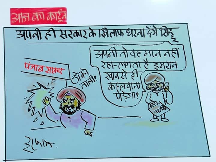 <p style="text-align: justify;"><strong>Irfan ka Cartoon</strong>: पंजाब कांग्रेस प्रमुख नवजोत सिंह सिद्धू ने धमकी दी है कि अगर उनकी पार्टी की राज्य सरकार मादक पदार्थ पर विशेष जांच दल (SIT) की रिपोर्ट सार्वजनिक नहीं करती है तो वह आमरण अनशन पर बैठ जाएंगे. मशहूर कार्टूनिस्ट इरफान ने इसी मुद्दे पर आज कार्टून बनाया है.</p> <p style="text-align: justify;">कार्टून में लिखा है- अपनी ही सरकार के खिलाफ धरना देंगे नवजोत सिंह सिद्धू! अपनी बात तो वह मान नहीं रहे, लगता है पाकिस्तान के प्रधानमंत्री इमरान खान से ही कहलवाना पड़ेगा!</p> <p style="text-align: justify;"><strong>सिद्धू ने आमरण अनशन की धमकी दी</strong><br />सिद्धू ने कहा, ‘हजारों युवा मादक पदार्थ के चलते बर्बाद हो गए, माताओं ने अपने बेटे खो दिए. रिपोर्ट को सार्वजनिक करने से रोकने का कोई अदालती आदेश नहीं है. फिर आपको इसे सार्वजनिक करने से किसने रोक रखा है. हम जानना चाहते हैं कि पिछले मुख्यमंत्री रिपोर्ट को दबा कर क्यों बैठे हुए थे.’ उन्होंने 2015 में एक धार्मिक ग्रंथ की बेअदबी से जुड़े मामलों पर कहा, बेअदबी को लेकर सिद्धू एक बार फिर न्याय मांग कर रहे हैं.</p> <p style="text-align: justify;">कांग्रेस नेता ने हाल ही में मांग की थी कि मादक पदार्थ पर विशेष कार्य बल की रिपोर्ट सार्वजनिक की जाए और ‘नार्को-आतंकवाद’ के लिए जिम्मेदार बड़े लोगों को पकड़ने के लिए एक समयबद्ध जांच शुरू की जाए.</p> <p style="text-align: justify;"><strong>ये भी पढ़ें-</strong><br /><strong><a href="https://www.abplive.com/news/india/farm-laws-to-be-repealed-kisan-andolan-timeline-from-last-one-year-know-what-happened-and-when-datewise-2005213">Farmers Protest Timeline: भारत बंद, सरकार से आखिरी बातचीत, सुप्रीम कोर्ट की फटकार… किसान आंदोलन और कृषि कानूनों पर अबतक क्या-क्या हुआ</a></strong></p> <p style="text-align: justify;"><strong><a href="https://www.abplive.com/news/india/mumbai-terror-attack-anniversary-jaishankar-nitin-gadkari-yogi-adityanath-politicians-reaction-to-the-mumbai-attack-2005230">26/11 Mumbai Attack की 13वीं बरसी पर राजनेताओं ने शहीदों को दी श्रद्धांजलि, अमित शाह ने कहा- सुरक्षाकर्मियों के साहस को सलाम</a></strong></p>
