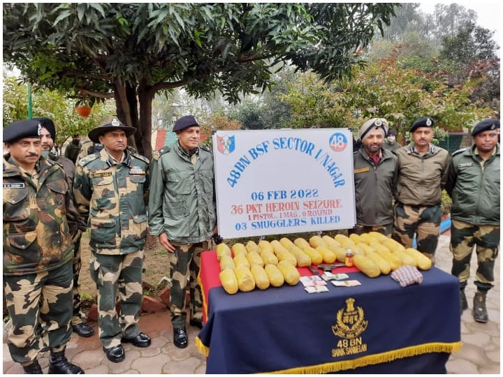 <p style="text-align: justify;"><strong>Jammu and Kashmir News:</strong> जम्मू और कश्मीर के सांबा में शनिवार और रविवार की दरमियानी रात अंतरराष्ट्रीय सीमा पर बीएसएफ ने नशे की एक बड़ी खेप को बरामद कर तीन पाकिस्तानी तस्करों को मार गिराया है. बीएसएफ ने मौके से 36 किलो हेरोइन, एक पिस्टल मैगजीन और कुछ कारतूस भी बरामद किए हैं. इसकी जानकारी बीएसएफ ने प्रेस कॉन्फ्रेंस कर दी है.</p> <p style="text-align: justify;">जम्मू में पत्रकारों से बात करते हुए बीएसएफ के आईजी डीके बुरा ने बताया कि अंतरराष्ट्रीय सीमा पर इस समय घना कोहरा छाया हुआ है और शनिवार और रविवार की दरमियानी रात इसी घने कोहरे का फायदा उठाकर पाकिस्तान ने नशे की एक बड़ी खेप भारत में भेजने की नाकाम कोशिश की. </p> <p style="text-align: justify;">उन्होंने बताया कि सीमा पर लगे सर्विलेंस इक्विपमेंट्स ने सीमा पर हुई तारबंदी के पास कुछ संदिग्ध गतिविधियां देखी. इन गतिविधियों के बाद फॉरवर्ड पोस्ट पर तैनात जवानों को आगाह किया गया. जिसके बाद वहां तैनात बीएसएफ के जवानों ने भी इलाके पर नजर रखी और जैसे ही यह गतिविधियां तारबंदी के पास पहुंची जवानों ने इन लोगों को चुनौती दी और उसके बाद फायरिंग की जिसमें तीन घुसपैठिए मार गिराए गए.</p> <p style="text-align: justify;">उन्होंने कहा कि सर्च ऑपरेशन के दौरान मौके से 36 पैकेट बरामद किए गए और हर पैकेट का वजन करीब 1 किलो का है. उन्होंने कहा कि तलाशी के दौरान इन घुसपैठियों से इटली में बना एक पिस्टल कुछ मैगजीन और कारतूस भी बरामद किए गए हैं. बीएसएफ ने दावा किया कि पिछले कुछ समय से पाकिस्तान ने सीमा पर कई ऐसी गतिविधियां करने की कोशिश की जिन्हें अंजाम तक पहुंचने से पहले ही नेस्तनाबूद किया गया.</p> <p style="text-align: justify;">बीएसएफ ने यह भी दावा किया है कि पिछले 1 सप्ताह से उन्हें लगातार यह सूचनाएं मिल रही थी कि पाकिस्तान सीमा पार से नशे की एक बड़ी खेप भारत में भेज सकता है. जिसके बाद सुरक्षा बल अलर्ट पर थी और अब उन्हें यह बड़ी कामयाबी मिली है. बीएसएफ ने दावा किया पिछले कुछ समय से पाकिस्तान ने 4 बार ऐसी कोशिश की है कि नशे की केप भारत में भेजी जाए लेकिन जवानों ने इन कोशिशों को पूरा नहीं होने दिया. इसके अलावा बीते कुछ समय में 9 पाकिस्तानी घुसपैठियों को सीमा पर मार गिराया गया है.</p> <p style="text-align: justify;"><strong>इसे भी पढ़ेंः</strong><br /><a href="https://www.abplive.com/news/india/lata-mangeshkar-death-live-updates-indian-playback-singer-bharat-ratna-singer-lata-mangeshkar-demise-92-mumbai-breach-candy-hospital-latest-videos-photos-news-2055403"><strong>रहें ना रहें हम, महका करेंगे: चली गईं सबकी लता दीदी, महानायक बोले अब स्वर्ग में गूंजेगी उनकी मधुर आवाज</strong></a></p> <p style="text-align: justify;"> </p> <p style="text-align: justify;"><a href="https://www.abplive.com/entertainment/bollywood/lata-mangeshkar-last-instagram-post-viral-queen-of-melody-became-emotional-after-remembering-her-father-2055513"><strong>Lata Mangeshkar last Post: लता मंगेशकर ने आखिरी बार पोस्ट किया था ये वीडियो, पिता को याद कर हुईं थीं इमोशनल</strong></a><br /><br /></p>