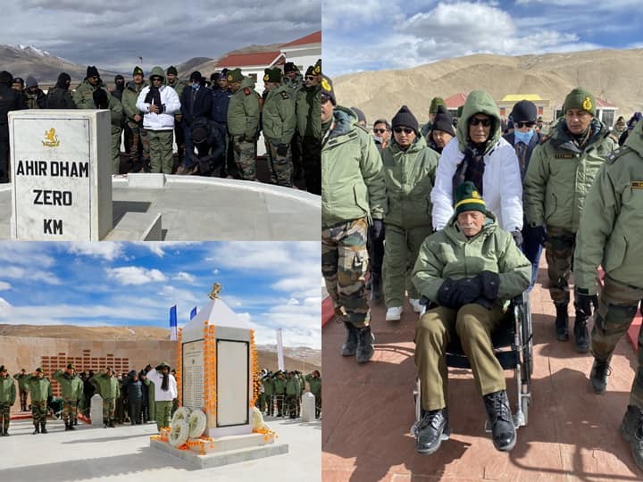 Rezang La War Memorial: 11962 की जंग के शूरवीर को राजनाथ सिंह का अनोखा सलाम, रक्षा मंत्री ने यूं दिया सम्मान, देखें तस्वीरें