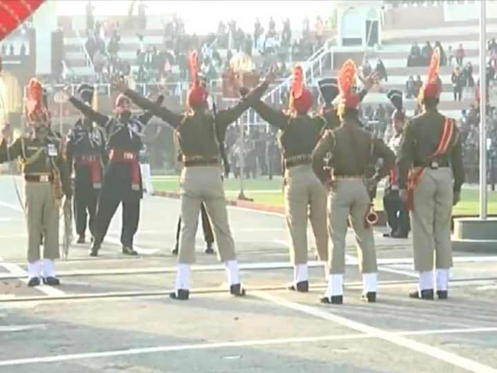 <p dir="ltr" lang="en"><a href="https://twitter.com/hashtag/WATCH?src=hash&ref_src=twsrc%5Etfw">#WATCH</a> Beating Retreat ceremony at the Attari-Wagah border near Amritsar, Punjab on <a href="https://twitter.com/hashtag/RepublicDay?src=hash&ref_src=twsrc%5Etfw">#RepublicDay</a> <a href="https://t.co/EEXxUQWdk9">pic.twitter.com/EEXxUQWdk9</a></p>
